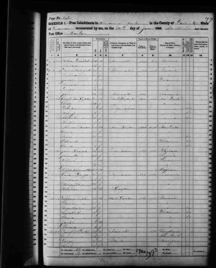 Census: 1860, Barton, Washington, Wisconsin.